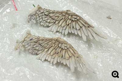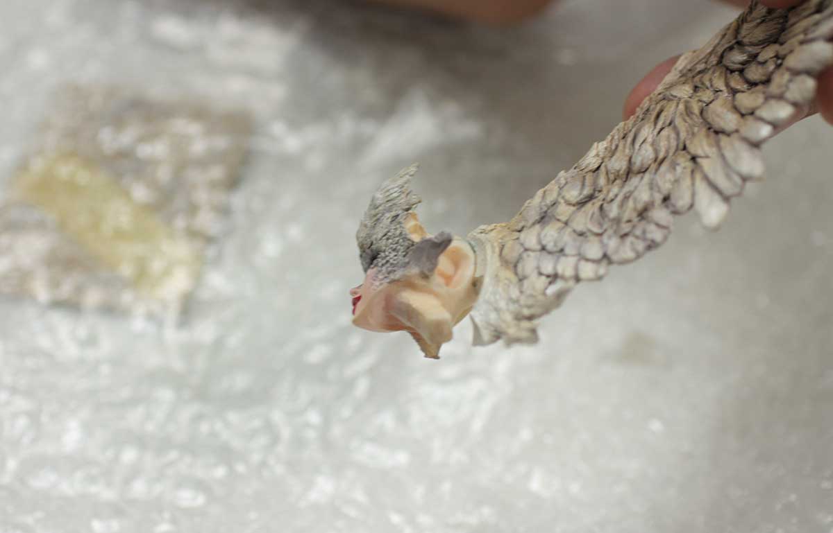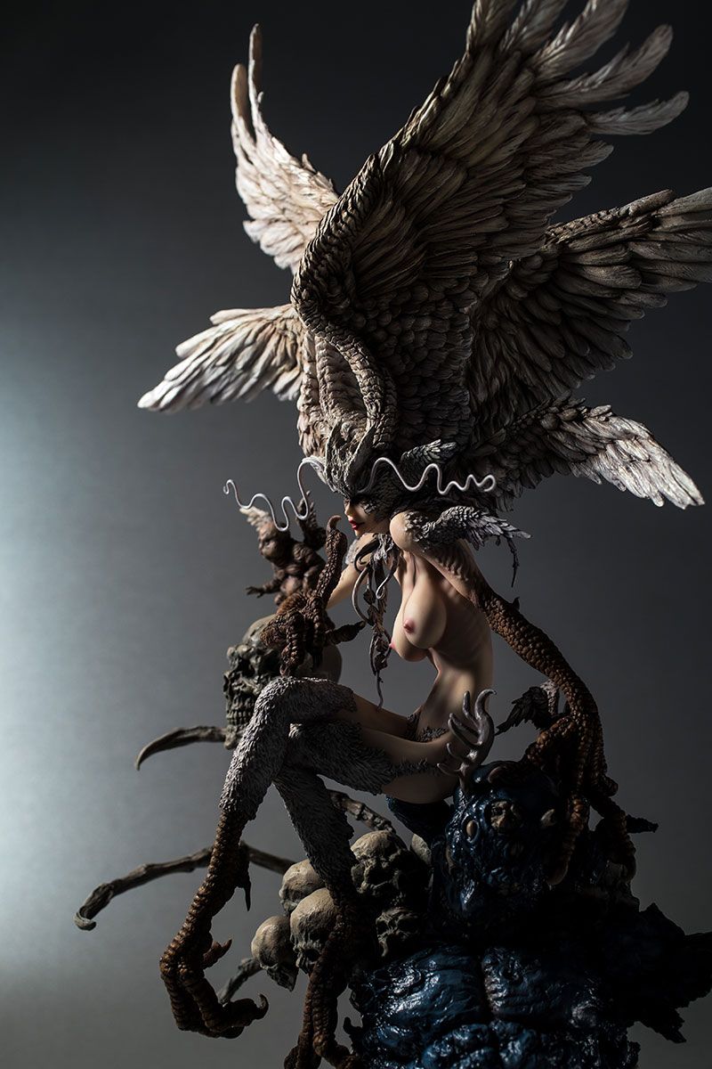 腕の鱗はお気に入りです。実際の鳥の足を参考にしながら作ってます。人間の手と岩の上に停まっていそうな鳥の足を融合したようなイメージで。