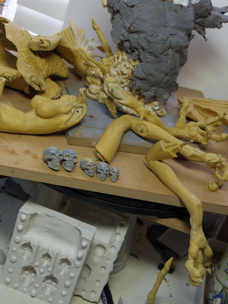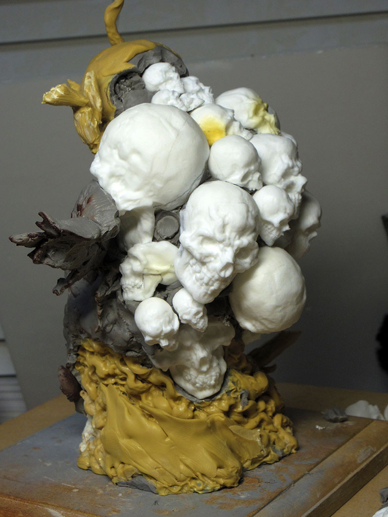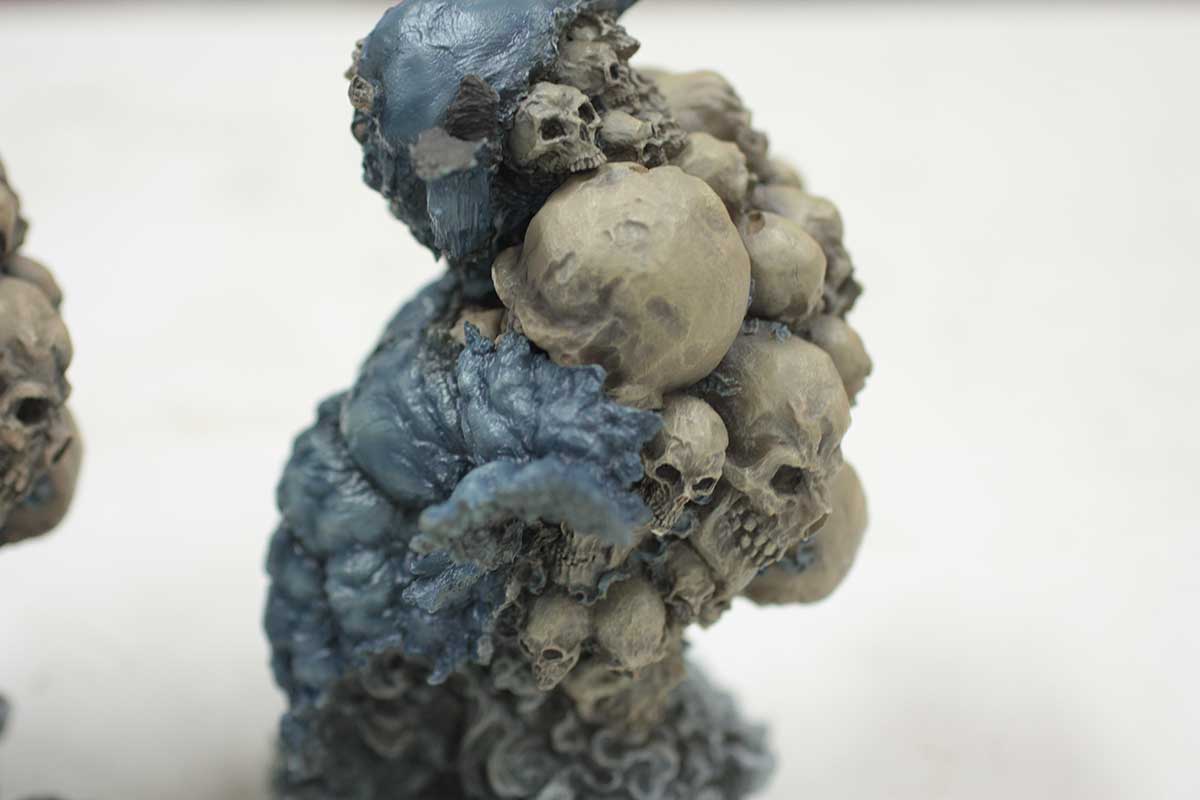 なんとなくイメージを固めてからエポパテを盛って固まるまでに造形してリューターで形を整えたりディテールを入れたりしてますが、イマイチ上手くいってませんね。ここから結構、試行錯誤していきます。小さめの髑髏が欲しいなと思って新たに作ってます。ここらで分割をやり始めてますね。画像10
