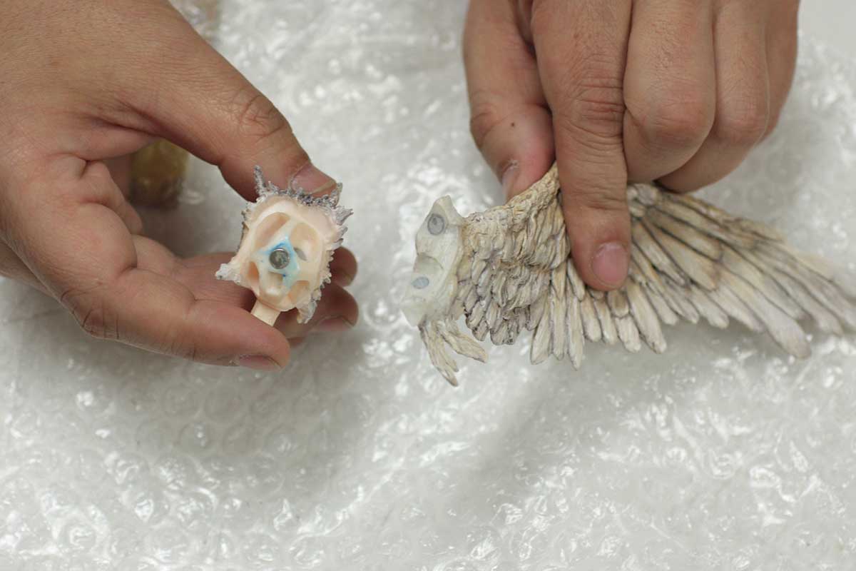 本作品の魅力を最大限に引き出すことのできる材質を検討しつづけた結果、細部の表現力に優れたレジンキャストに行き当たりました。