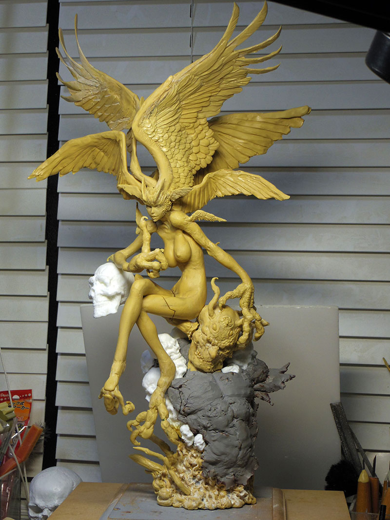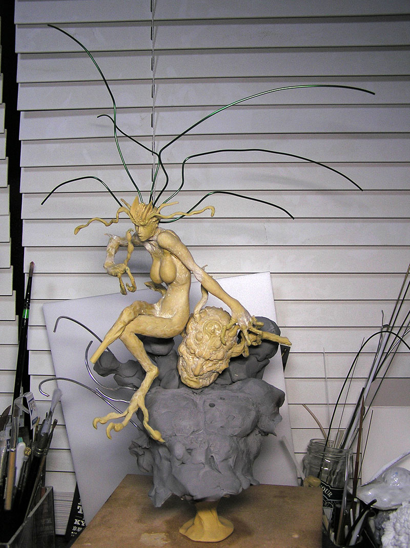 シレーヌを作り始める少し前まで僕は五里霧中、何を作っても上手くできない、評価もされない、と仕事で造形をしていく中で段々と自信を失くしていた時期でした。ただ手を動かしているだけで楽しいという気持ちも、その頭に渦巻くモヤモヤによって心の隅に追いやられ、造形する事自体が辛くなっていきました。ほんとはそんな事なかったのかもしれないけれど、理想と現実の違いにどうしても納得できず自分を認める事ができませんでした。